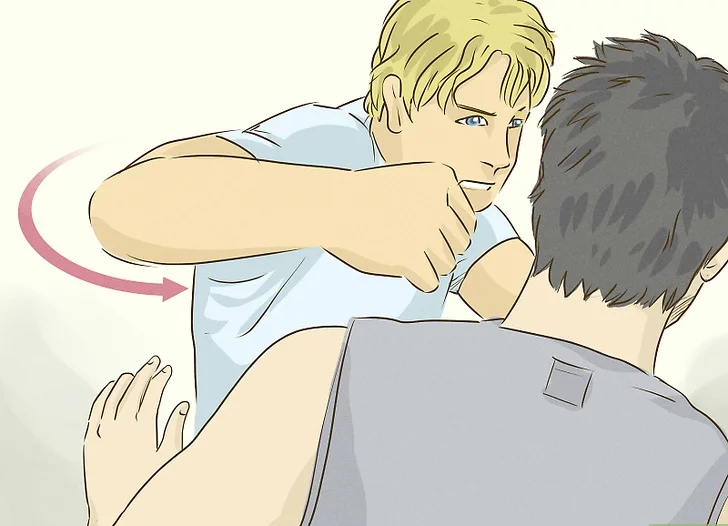 - Giơ tay lên với lòng bàn tay mở để trông như bạn không muốn đánh nhau nữa trước khi tung cú đấm móc với bên cánh tay nghiêng về phía trước. Đây là cách hay để làm đối phương bất ngờ và choáng.