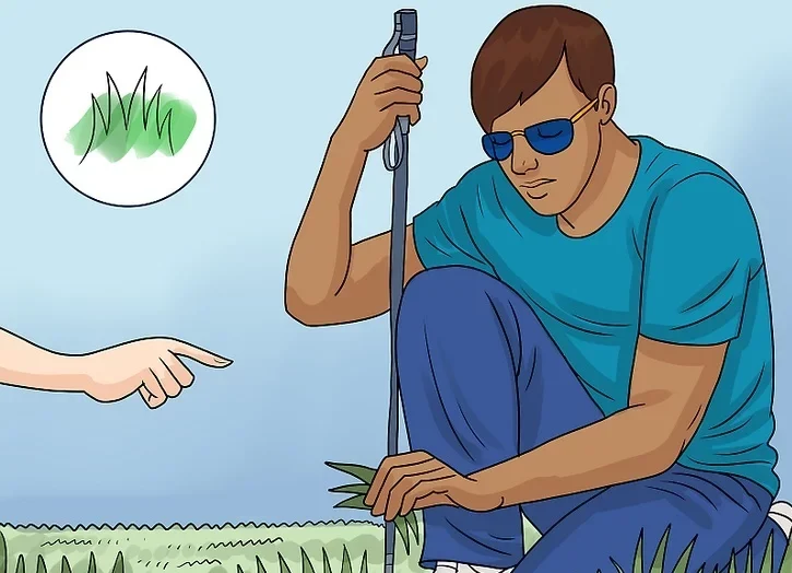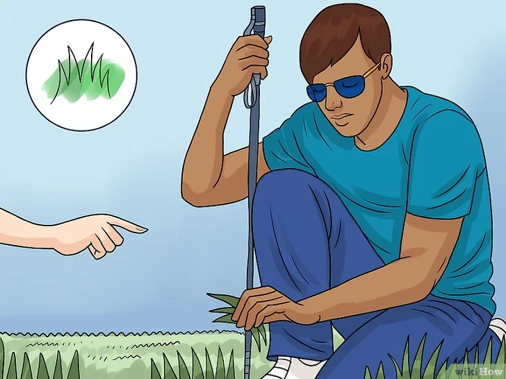 Hỏi xem người đó có bị khiếm thị bẩm sinh không. Vì gần như những người bị khiếm thị (ở Mỹ) là do bệnh về mắt, nhiều người bị suy giảm thị lực trước đó vẫn có thị lực tốt. Điều này có nghĩa bạn có thể giúp họ nhớ một số thứ họ đã nhìn thấy bằng cách miêu tả.