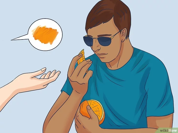 2. Cho người đó một quả cam và giải thích rằng những quả cam có màu cam. Yêu cầu họ chú ý đến mùi và vị của quả cam.