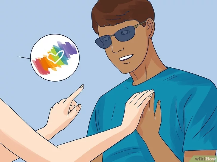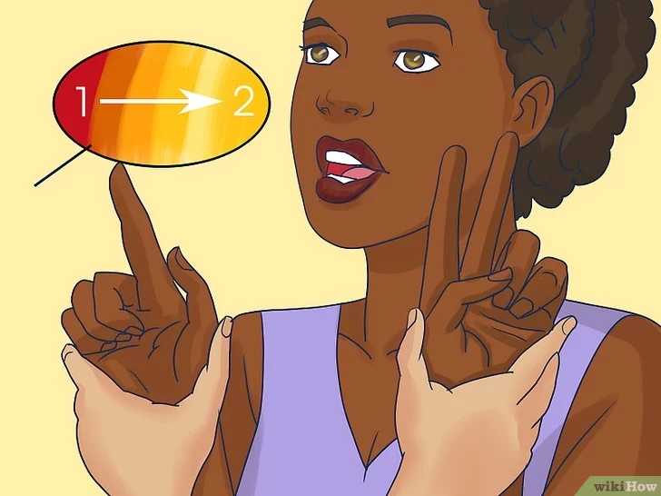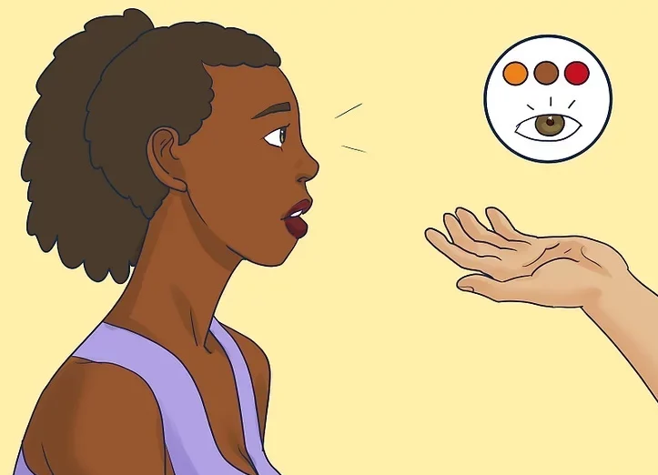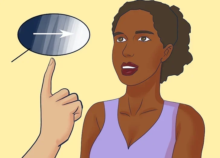 Cho người đó giữ một vật thể nào đó trong khi bạn miêu tả màu sắc. Sử dụng vật nào đó gần như luôn luôn có một màu nhất định sẽ dễ miêu tả hơn.