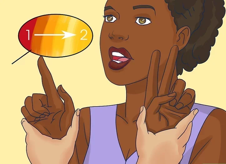 • Cho người đó biết: “Nếu bạn đã từng bị cháy nắng, da của bạn sẽ chuyển sang màu đỏ. Hoặc, nếu bạn cảm thấy ngượng và đỏ mặt thì sức nóng trên hai má của bạn có màu đỏ”.