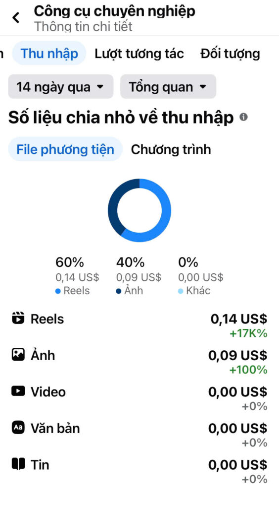 Bên dưới là ảnh thu nhập của mình trên Facebook trong 24h qua khi được bật kiếm tiền (Link: https://www.facebook.com/smartupkid ). Gần như không làm gì để có được nó vì các content cũ đã đăng đang tự cắn tiền. Con số cũng không đáng kể, nhưng mình thấy có cơ sở và tiềm năng…