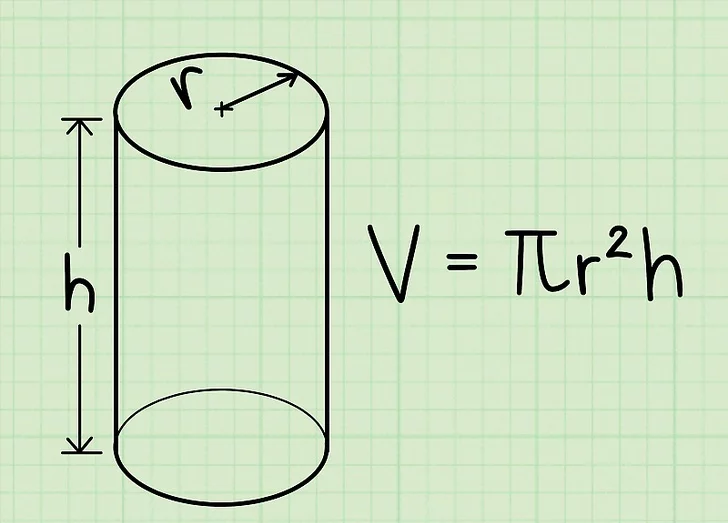 2 Công thức tính thể tích hình trụ tròn. Để tính thể tích hình trụ tròn, bạn cần biết chiều cao của hình đó và đường kính mặt đáy (hay khoảng cách từ tâm tới cạnh của hình tròn). Công thức để tính thể tích hình trụ tròn như sau: V = πr2h với V là Thể tích, r là bán kính của mặt đáy, h là chiều cao của hình trụ, và π là hằng số pi.