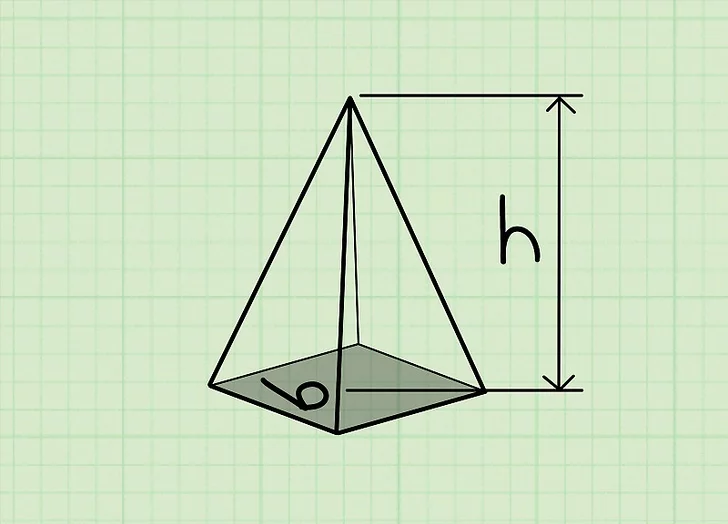 3 Tính diện tích mặt đáy. Công thức tính diện tích mặt đáy phụ thuộc vào số cạnh của đa giác tạo thành mặt đáy. Đối với hình chóp trong giản đồ mà ta có ở đây, mặt đáy là hình vuông với các cạnh có kích thước là 6 inches. Ta có công thức tính diện tích hình vuông là A = s2, với s là chiều dài cạnh hình vuông. Vậy với hình chóp này, diện tích của mặt đáy là (6 in) 2, hay 36 in2.