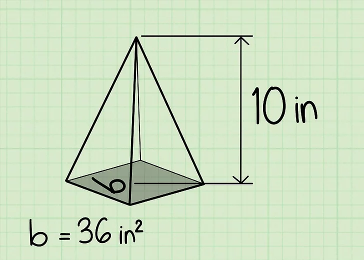 4 Tìm chiều cao của hình chóp. Trong hầu hết các trường hợp, giá trị này sẽ được cho theo giản đồ. Với ví dụ mà chúng ta đang xét, chiều cao của hình chóp là 10 inches. Image:Calculate Volume Step 30.jpg|center]]