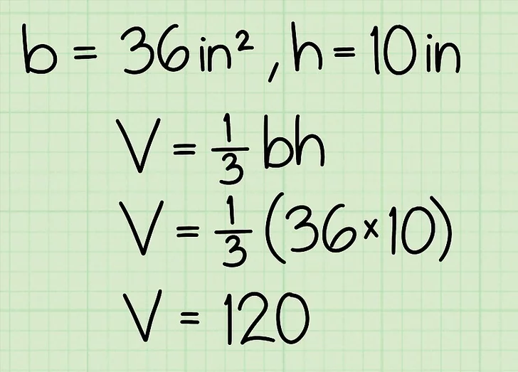 7 Đừng quên ghi đơn vị của thể tích theo dạng inch khối hay mét khối, v.v. Trong ví dụ ở trên, các giá trị được tính theo inch, vậy nên thể tích cần được ghi là 47.12 in3.