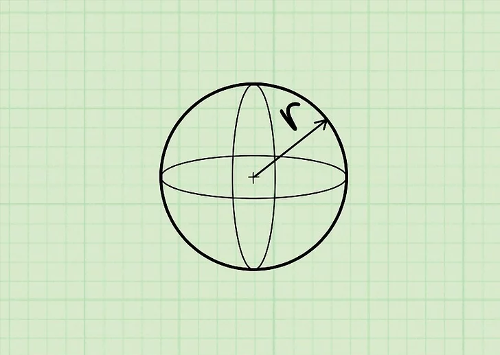 3 Tìm bán kính của hình cầu. Nếu bán kính được cho trước trong giản đồ, việc tìm bán kính chỉ là xem nó được đánh dấu ở đâu. Nếu đề bài cho đường kính, ta tìm bán kính bằng cách chia đôi đường kính. Ví dụ, bán kính của hình cầu trong giản đồ cho ở đây là 3 inches.