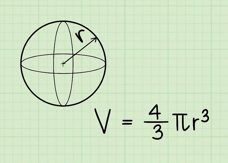 2 Công thức tính thể tích hình cầu. Công thức tính thể tích hình cầu là V = 4/3πr3 (bằng chữ: “bốn lần pi chia 3 nhân với r mũ 3”) với r là bán kính của hình cầu, π là hằng số pi (3.14).
