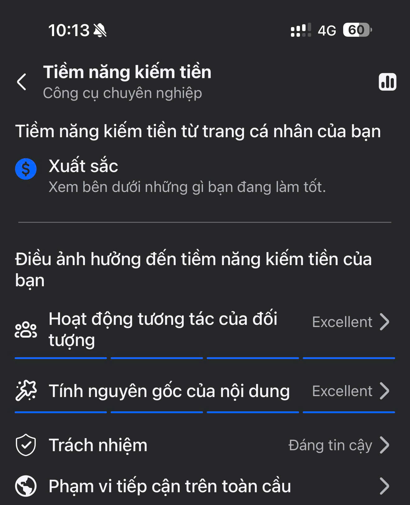 – Khác với “In-Stream Ads” hay “Reels Bonus”, mục này là chương trình chia sẻ doanh thu quảng cáo cho mọi loại nội dung (bài viết văn bản, ảnh, video, reels). Để bật được, tài khoản cần: